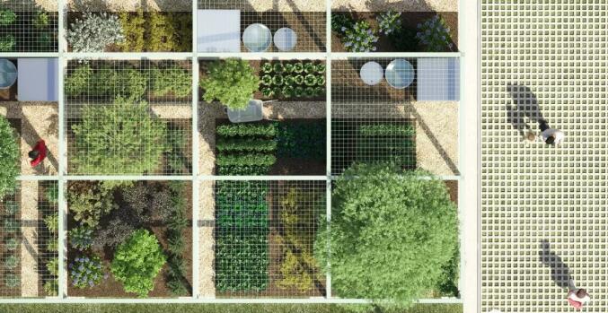 为了将停车场转变为生态场地,스튜디오 프로젝트 내 지정된 구역은 신선 농산물 매장으로 전환되어 사람들이 재배 공간을 임대하거나 판매하여 "제로"를 사고 생산할 수 있습니다 포장 "과일과 야채
