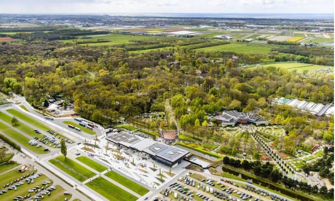 전체 대지의 북동쪽 경계를 둘러싸는 수직 띠 '커튼'은 역동적인 곡선의 배경을 만들어 전시장 전체를 하나로 감싸는 동시에 동쪽 슬롯사이트 벳무브장이 내부 경관에 미치는 부정적인 시각적 영향을 차폐한다