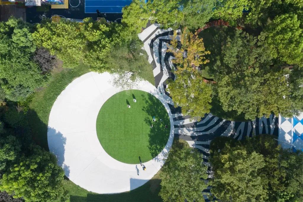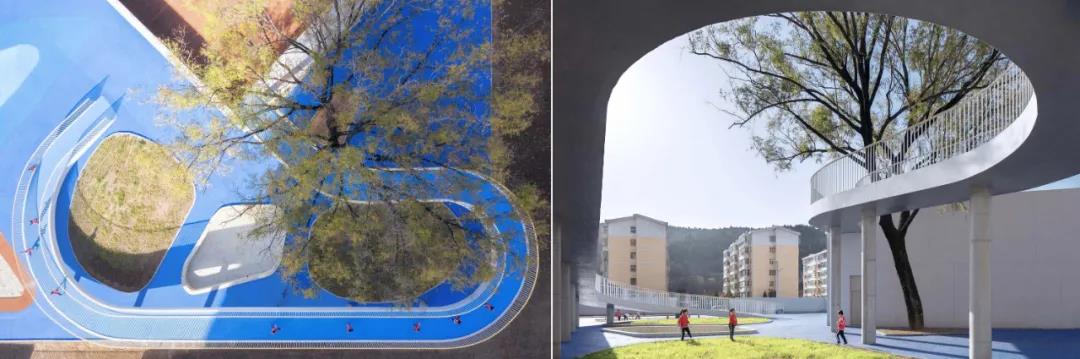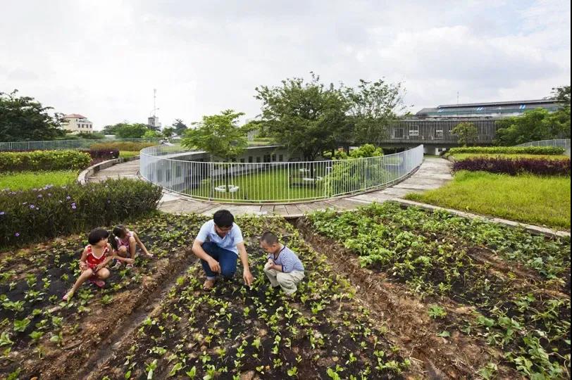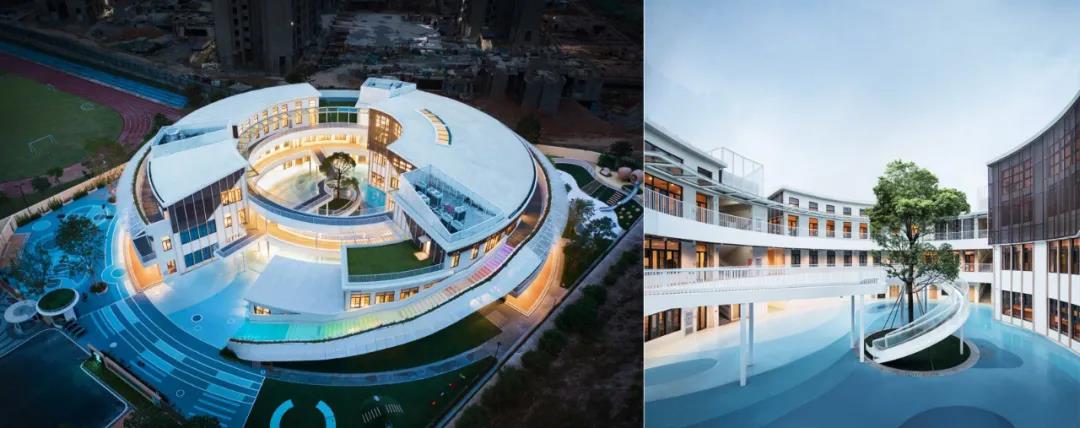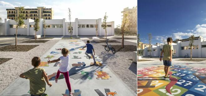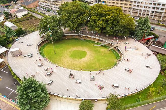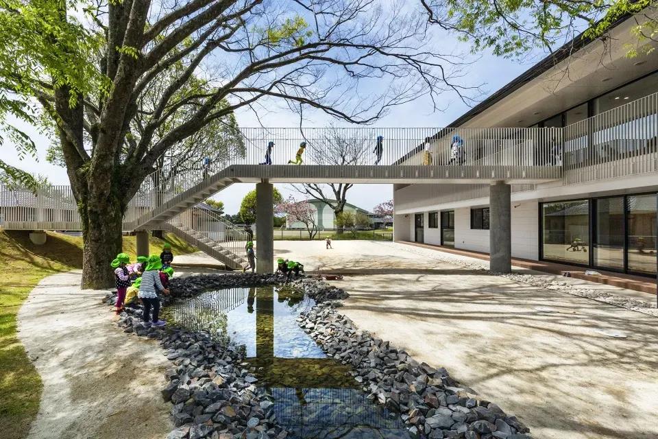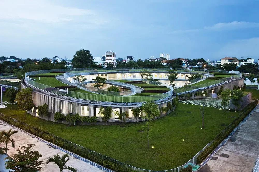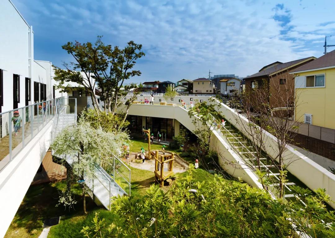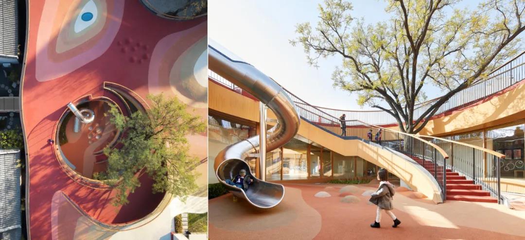 삼중 연결 모양의 개방형 녹색 지붕은 세 개의 밀폐된 안뜰을 만들어 유치원 어린이들이 안전하게 놀 수 있는 장소를 제공합니다 건물의 나선형 형태는 다양한 레벨과 경사도를 만들어내고 다양한 야외 학습 공간을 제공하여 슬롯사이트 이용후기들이 자연 세계와 친밀한 관계를 발전시킬 수 있도록 해줍니다