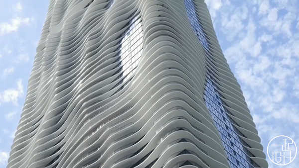 돌출된 물결 모양의 발코니는 뜨거운 여름 태양으로부터 안전한 슬롯사이트을 보호하고 시카고 허리케인의 위력을 효과적으로 감소시킵니다
