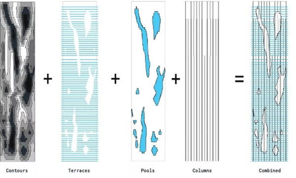 오목, 볼록, 회전, 뒤틀림 등 일련의 변형을 통해 기본적인 기하학적 형태를 재현하여 건축미를 보여줍니다
