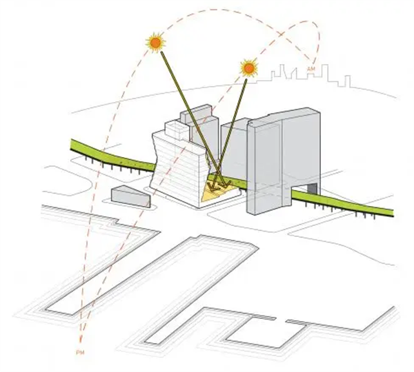 각 퇴창의 비틀린 각도는 완전히 다른 비율과 규모 관계를 형성하기 위해 신중하게 계산되었습니다 또한 시간과 날씨의 변화에 따라 다양한 빛과 그림자 효과를 만들어내며, 이는 디자인의 가치를 부각시킬 뿐만 아니라 색다른 건축미를 보여줍니다
