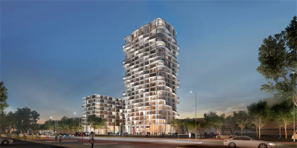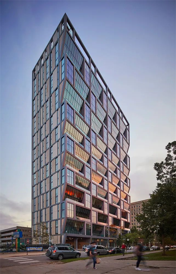 시카고에 있는 이 프로젝트는 250개의 주택, 녹색 지붕 및 독특한 외관 디자인을 갖춘 26층짜리 주거용 타워입니다