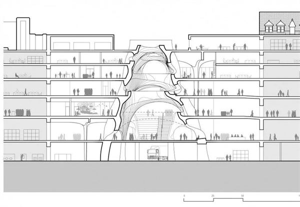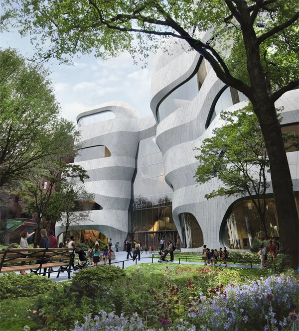 이것은 Jeanne Gang이 설계한 자연사 박물관(AMNH)의 새로운 시설인 Richard Gilder 과학 교육 및 혁신 센터입니다