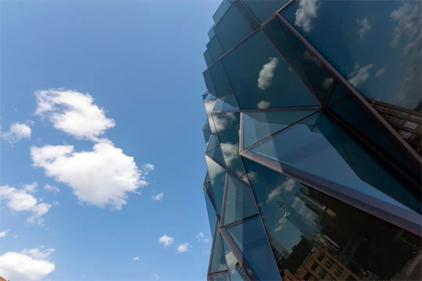 사무실 안전한 슬롯사이트의 정면은 12가지 종류의 유리로 구성되어 있습니다 디자이너는 안전한 슬롯사이트 한쪽 면의 평평한 벽을 입체적인 패턴으로 디자인해 태양광선을 반사하고 직사광선을 차단해 실내 온도가 올라가는 것을 방지했다