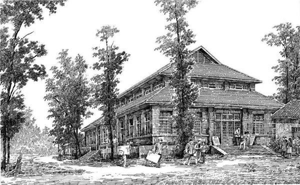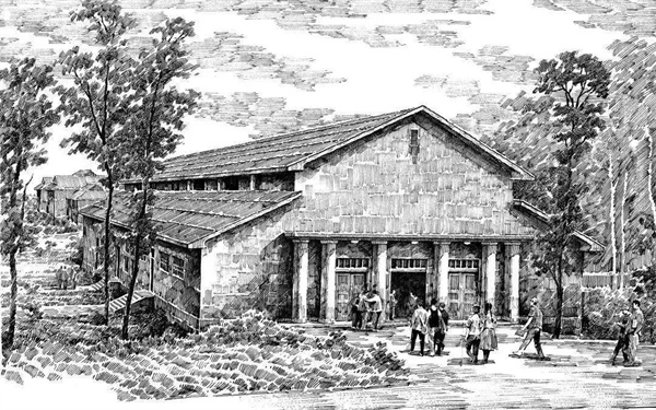 1950년대 초반에 건축된 이곳은 현재의 과학관 앞 열린 공간에 위치한 학교의 독특한 초가지붕 강당입니다 대나무로 묶인 구조와 초가 지붕은 모두 쓰촨 민속 가옥의 특징입니다 당시 임시 건물이었지만 강당은 여전히 약 2,000명을 수용할 수 있었습니다 모든 주요 학교 활동이 이곳에서 열렸으며 1983년까지 사용되었습니다