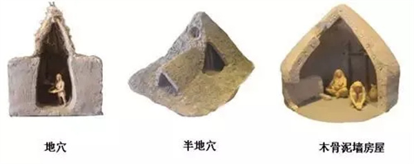북쪽 황허 중하류 황토 지역의 가옥은 반쯤 파묻힌 동굴 주거지에서 땅에 나무 뼈와 흙벽을 쌓은 둥근 가옥과 정사각형 가옥으로 발전했습니다 예를 들어, 시안 반포(Banpo) 현장은 나중에 정저우(Zhengzhou) 다허(Dahe) 마을 현장에서 2경사 지붕 다중 방 수평 주택으로 발전했습니다