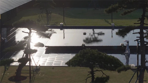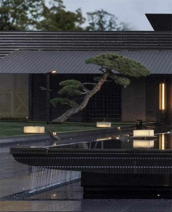고대 보저우(Bozhou)의 해자 배치에서 보면 현관 앞의 축은 물로 들어가고 있습니다 수경의 모양은 보저우(Bozhou) 박물관의 보물인 보준(Bozun)에서 번역되었습니다 30m 길이의 수경은 입구 중앙에 매달려 시선과 함께 안쪽으로 뻗어 있다 물은 잔잔하고, 파도는 반짝반짝 빛나고, 바닥에는 몽환적인 산수 질감이 새겨져 있고, 옥등은 따뜻한 빛을 발산합니다