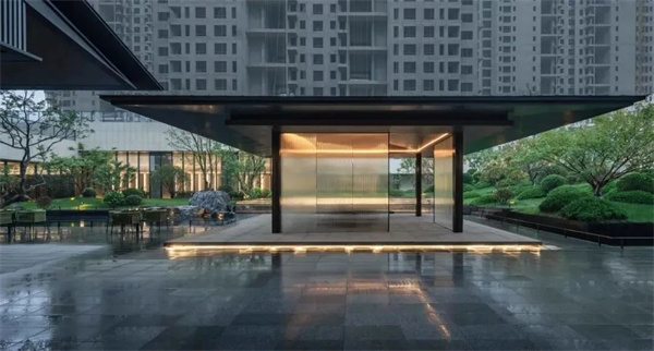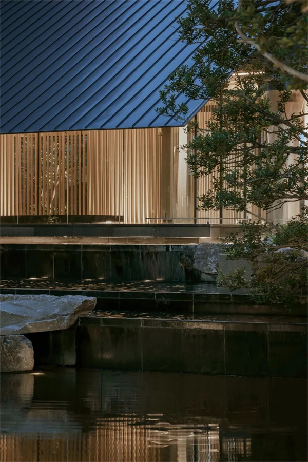 섬세하고 다양한 그릴 디테일은 대나무 요소를 다시 번역하여 완전한 조경 외관을 만들어냅니다 오목하고 둥근 대나무 그릴에 의해 굴절된 빛은 대나무 벽등과 보완되어 꾸준히 솟아오릅니다 이는 집으로 돌아가는 기분의 상징적 전환이자 단계적으로 존중되는 예절의 서문이기도 합니다